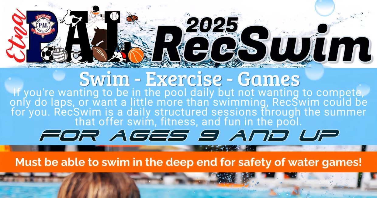 In a desire to continue with safe activities for our youth through the summer months, we bring RecSwim. If you're wanting to be in the pool daily but not wanting to compete with Swim Team, RecSwim is for you.